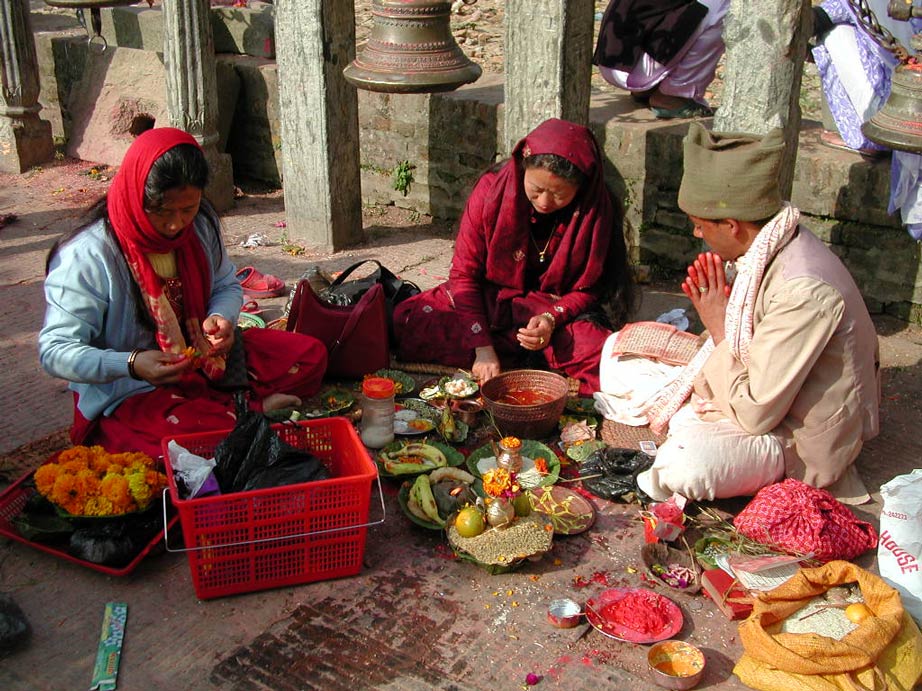 A family prepares their offering for the God and the priests