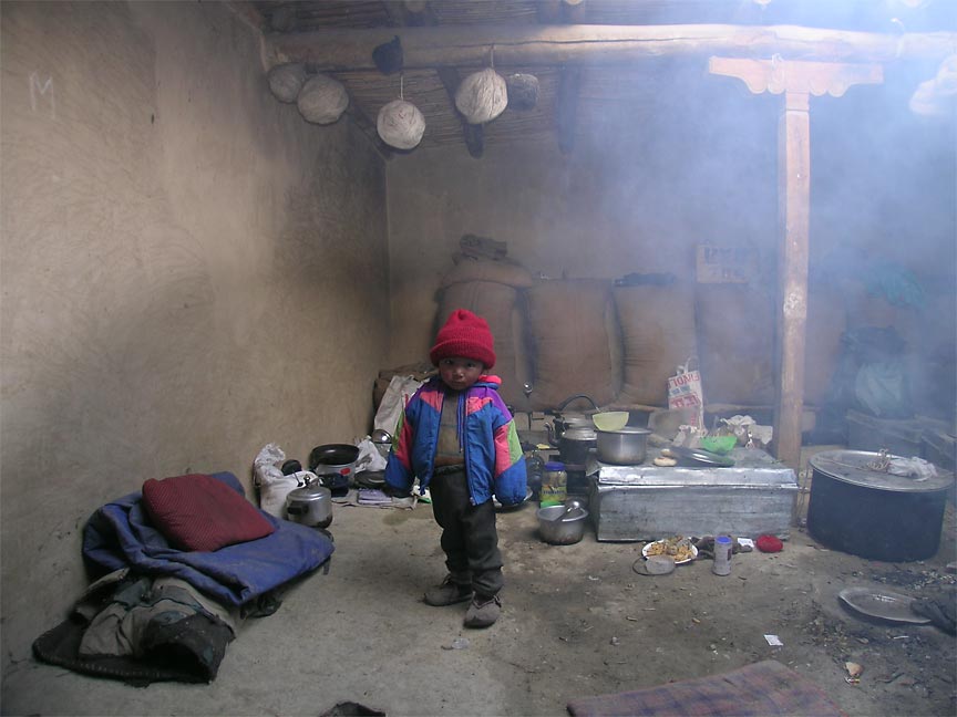mother (below) and sisters. Here his Nephew Tenzin investigates our kitchen;