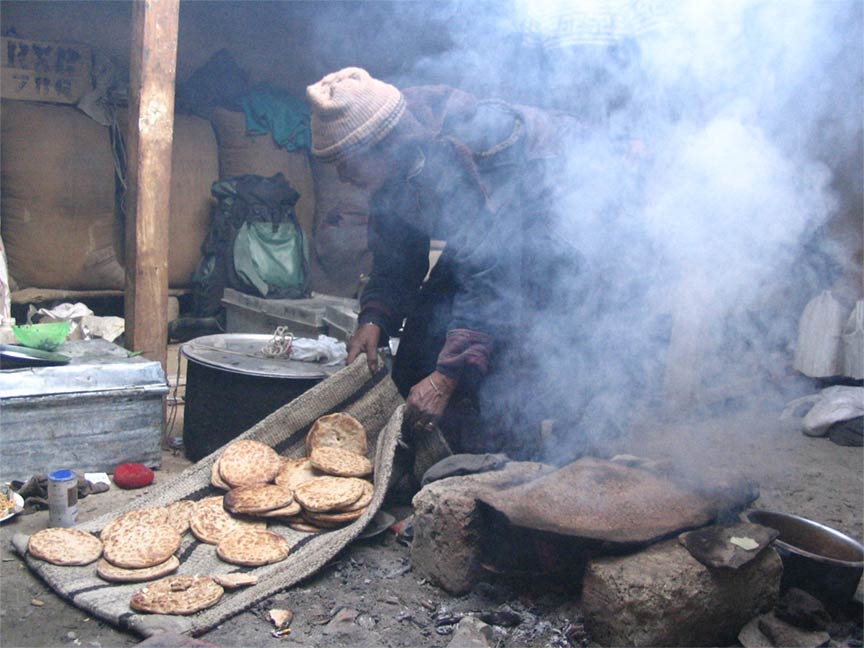 Bread is baked about 3 times a week in winter; the flat stone