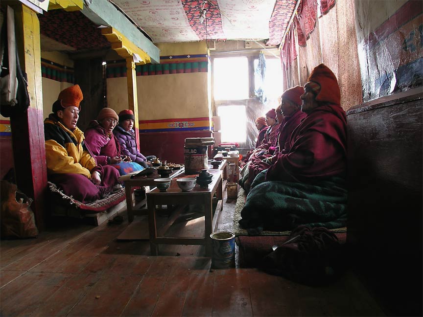 Here we visit morning puja by the nuns of Zangla Nunnery, who