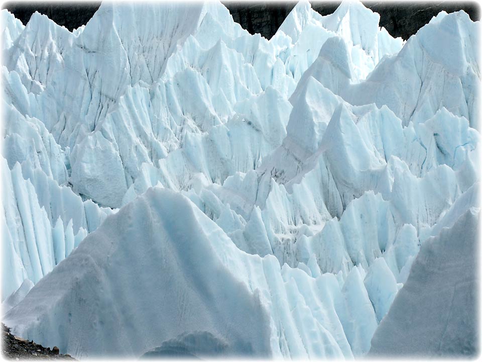 Finally after 8 days at base camp we trekked up to ABC (see the yaks below) and en route we walked on moraine beside this stunning glacier.