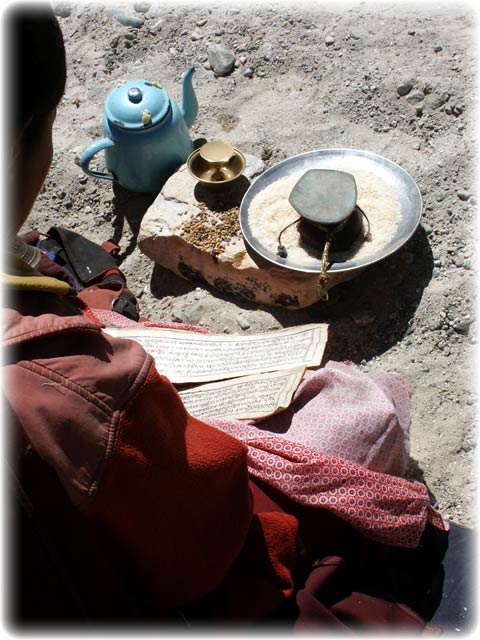 scattered over the rubble just below the snout of the Rongphu Glacier,