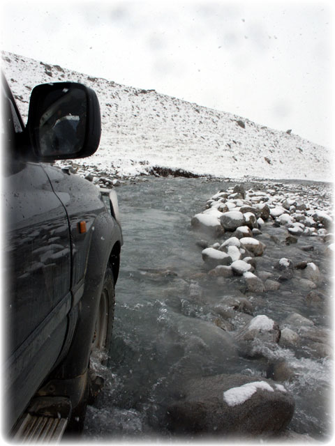 Driving out at the end of the expedition it snowed hard,