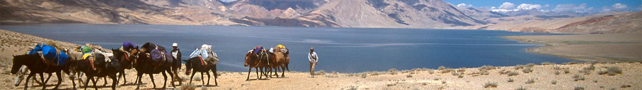 Sherap's and Punshok's indefatigable horses and mules walking around Tso Moriri - Jamie?