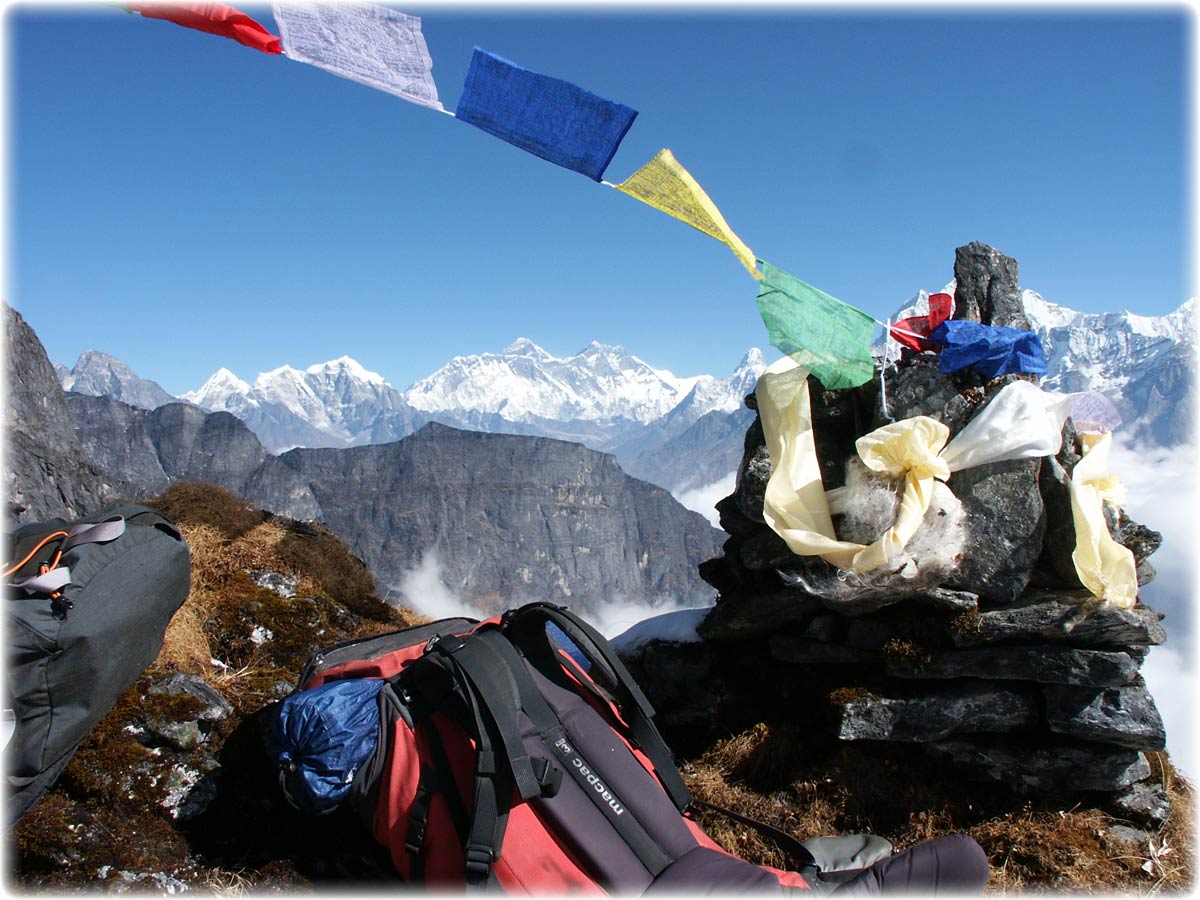 Below: Naturally we tied prayer flags and katas to the top - Jamie