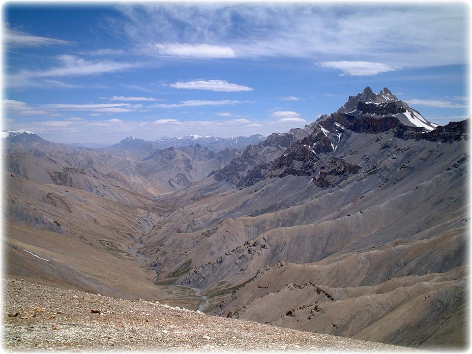 After crossing a 5800m pass we stayed high in the huge space of a valley system rarely trekked.