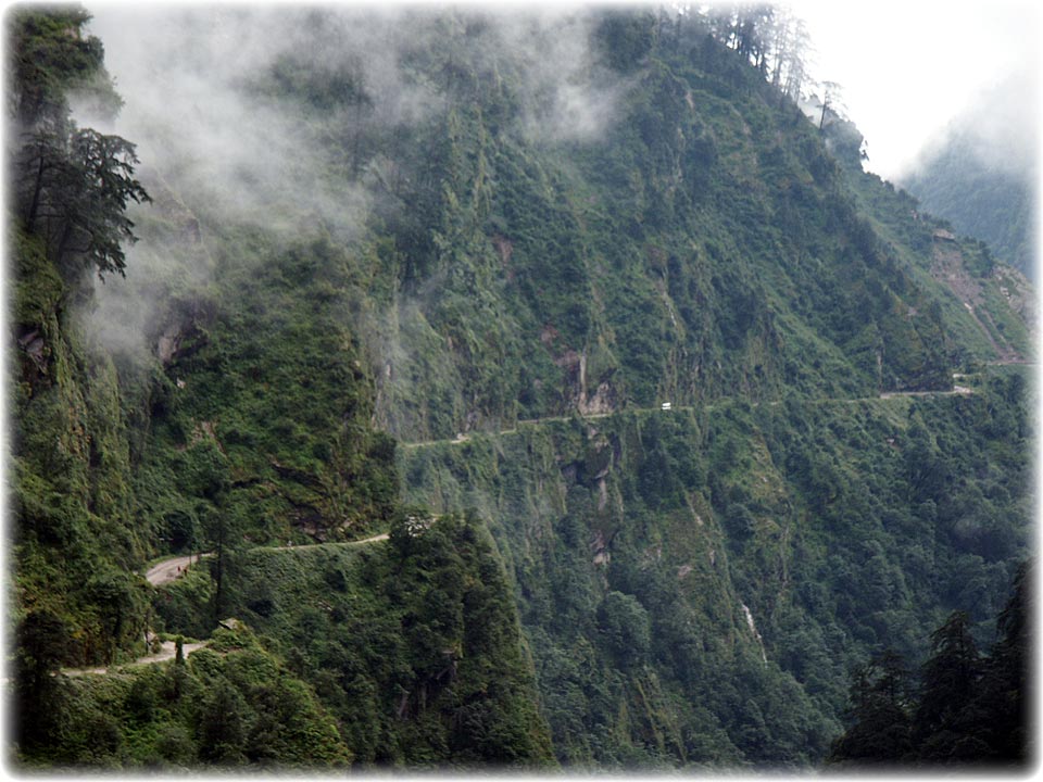 The gorge leaving Zhangmu for the climb to Nyalam is probably one of the most breath-taking there is, and quite an engineering feat, gaining 1300m in a couple of hours, then the next day tops out at 5150m, below.