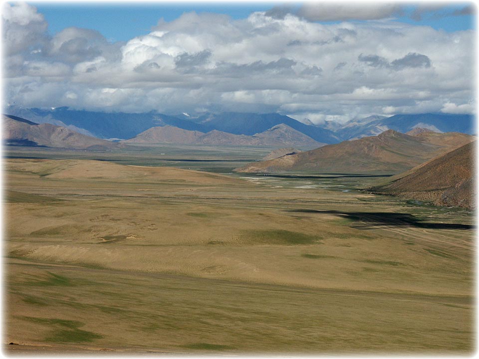 After the middle hills and rugged gorges we cross the pass to the Tibetan Plateau with its wide panoramas.