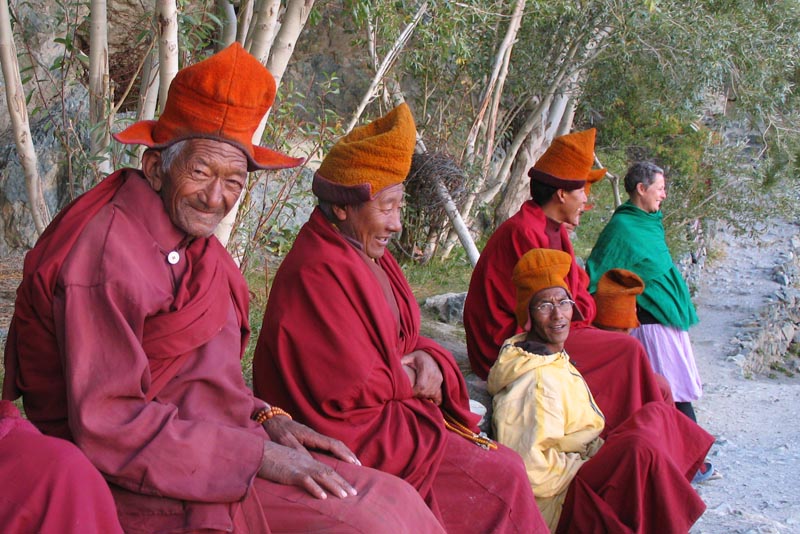 27 - Trek Panjila, drive Leh 3500mLeaving camp, we arrive at Hanupatta village after walking through the trail lines with fading pink Zanskar roses, old rock walls and the fields of Hanupatta village. Enjoy the cathedral like rock spires, the blue, blue crashing river, and grab the shade while you can, as today can be hot. We'll reach a teahouse at the intersection of the trek to Photoksar (the shortcut) after about two hours, and soon after crossing the bridge over the river (but NOT the bridge just after the teahouse, leading BACK to Photoksar), we will reach the extent of the new road, sadly moving closer and closer with each year ... Our jeep awaits us either at the new bridge, or at Panjila an hour further down the road, depending on the road conditions, and then we'll have a four to five hour drive back to Leh; en route, we'll pass the intersection of the Zanskar and Indus river, as Basgo Fort, Phyang Gompa and Spitok Gompa. We should arrive at the Shaynam Hotel in time for a shower and dinner. Our first days of real Himalayan trekking, starting with an hour's walk along the new road being built to connect Ladakh with Zanskar. After crossing the new bridge, we continue on the dirt road for half an hour, eventually reaching the trail through the spectacular gorge leading to Hanupatta. Pink Zanskar roses line our trail, leaving behind a scent of cinnamon, and incredible spires of rock tower above at every corner. There is a chance for tea at the corner of our gorge and another leading to Photoksar, and an oasis of a spring soon afterwards to fill up water bottles. After another two hours of hiking, we enter the long village of Hanupatta, with its ancient carved mani walls and chortens, and continue another half hour to the rickety bridge that leads to our camp on the river. 28, 29- LehWe have two days to enjoy the peaceful atmosphere of this little piece of old Tibet, King Tashi Namgyal's 15th century Himalayan capital. There is lots to explore in this wonderful Central Asian town, and Kim knows it well; the fort and palace, colorful gompas, the mosque, a museum, back alleys with steaming Muslim bread and tiny antique shops tucked away, colorful bazaars and even a polo field. Of course, we'll show you the bakeries, cafes and the best tandoori restaurant in Leh (with cold, post-trek beers) for our last dinner together ... We'll spend part of one day visiting some of the wonderful Tibetan Buddhist gompas and ancient forts which make the Indus valley such a scenic and historic region.