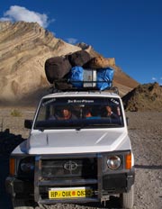 Detailed Itinerary*Note that although we try to follow the itinerary here, at times local trail, river or weather conditions may make a deviation necessary; rivers may be impassible, snow blocks passes, and landslides wipe out trails. The trekking itinerary and campsites may also vary slightly depending on our trekkers' acclimatization rates. Arrival in IndiaMost flights into Delhi arrive late at night or very early in the morning; plan the date and time of your arrival carefully. Please email us your flight arrival details as soon as possible, and have our contact details with you when you arrive in Delhi. Kim will have her mobile with her, as will our drivers from Dhruv Travels, so don't hesitate to call. Day 1 - Arrive DelhiA representative from Dhruv Travels will meet your international flight at the New Delhi airport, so look for a yellow Project Himalaya sign as well as a sign with your name on it. 2 - Drive Manali 2000mWe take the Himachal Pradesh Luxury Overnight Tourist Bus from Delhi to Manali, check-in time 6 pm, so have the day free for some sightseeing in Delhi, or to rest up after a long flight to India. 3 - ManaliWe arrive in Manali around noon, and have the rest of the day free to explore Manali and its bazaars, or just to relax at our wonderful hotel next to the pine forest, The Mayflower. We'll go out for the best wood-oven pizza in northern India tonight, just up the road at Il Forno, and celebrate our first night in the hills with a few cold beers ... 4 - Drive Jispa 3200mWe head off from Manali after breakfast, stopping at the Tibetan colony to pick up some supplies, and heading towards the 4000 meter Rohtang Pass. Crossing the Pir Pinjal is simply spectacular, and on the other side the monumental nature of the Himalaya is equally breath-taking. Once over the pass, we have entered the region of Lahaul, a distinct Himalayan region. (Have your passports with you for the check post just over the pass, where we stop for a 'bhatti' lunch). The entire drive is wonderful, and we'll have time to stop and take in the views as we only have a six hour drive to Keylong. We will notice the different style of dress in this region, and the Lahauli women are known as some of the most beautiful in the Himalaya. After passing through Keylong, the principal town of Lahaul, we continue another half and hour and set up our first camp in lovely Jispa, part of our acclimatization program for the trek. Here, we'll meet the horsemen with their horses, and get to know the routine of camp a bit. 5 - Drive Palamo, camp Palamo 3680mAnother 1 1/2 more scenic hours of driving brings us to Darcha, a collection of tea houses, where we head off the Manali-Leh highway on a small, new road to Palamo. Have your passports ready as there is another check post at the bridge just before Darcha. At camp, you'll meet your home for the next few weeks, a Tibetan style dining tent ('gur' in Ladakhi) and your own Marmot or Big Agnes tent; two person tents for singles, and three person tents for couples. Our campsite in Palamo is wonderful and grassy, stretched out along the meandering stream, and we will have plenty of time to show you how to set up the tents. Grab a camp chair and stretch out by the stream with a book for the afternoon; or, if you've got energy to spare, there is also a ridge to the west, heading up towards a waterfall, for additional acclimatization and a good hike. But take it easy! *** We have short days the first few days of the trek, as we are gaining altitude, and it is essential to ascend slowly and within 500-600 meters maximum per day. It is vital during the early days of the trek to not over-exert yourself, and to keep hydrated. We recommend at least three liters of water per day, and a sun-hat or cap.
