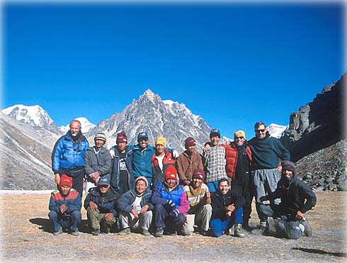 light expedition style. Although most people enjoyed the trek, and several have trekked with us again, I still have regrets - we could have done better with this very diverse group. It didn't help that Dave was sick for the first part of the trek or that the weather was shite - no Tengkoma summit. But they did see snow leopard prints and have many enjoyable evenings. Note that Jamie went to Cho Oyu on short notice.
