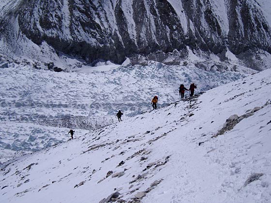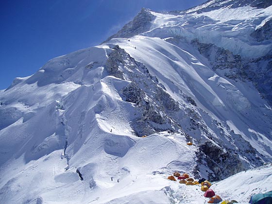 Depot camp 6055m; we are the only expedition that has used this half way point to break the jump in altitude from ABC (5690m) to C1 (6390m). 1 May - to C1 6390mUp the "killer scree slope". Photos don't do it justice, it is steep and loose, although to be honest, not particularly long.