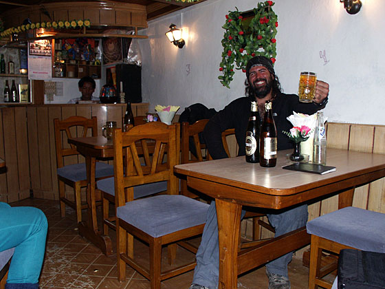 We stayed in a cute little hotel that served beer - too much to Moe (only two in here), who in the middle of the night simply stood up out of bed and peed. There was no balcony there, only Jamie in the bed beside! Yuck! Yes, you read right. A desperate yell, and Moe turned off his hose to find a spot with a longer and less complaining drop. The cost has still to be worked out...