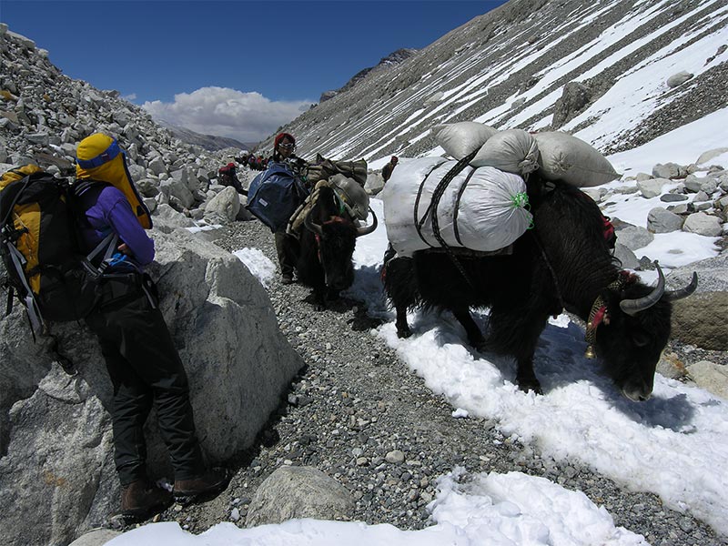The weather is looking good so they are going to carry loads high on the mountain.