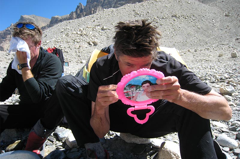 hairs and Kevin just finished shaving - Kirsti 27 May - newsAndrew Lock successfully summitted Annapurna, and just as importantly, got down alive. That makes his 12th 8000m summit - congratulations! The statistics for Annapurna don't make pleasant reading; do a search on Explorers Web. But some bad news too though; Iigo de Pineda, who was on our 2006 Project Himalaya Everest Expedition died climbing Kanchenjunga, 25 May 2007, from a fall above 8000m. He was strong and balanced; I feel very sad. He also climbed Cho Oyu and Shishapangma Central summit with Andrew Lock in 2005. |