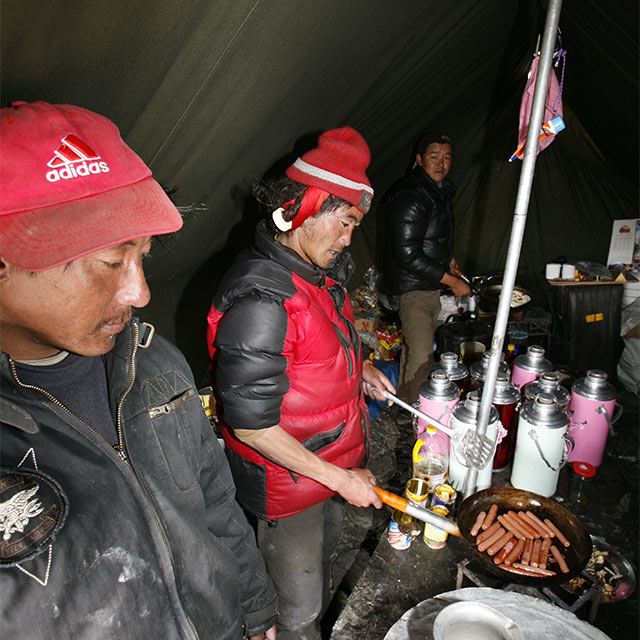 Loto, Dorje cooking sausages and Tawa behind cooking the chapatis - Jamie |