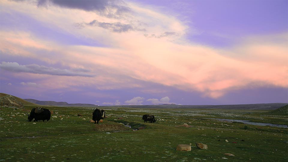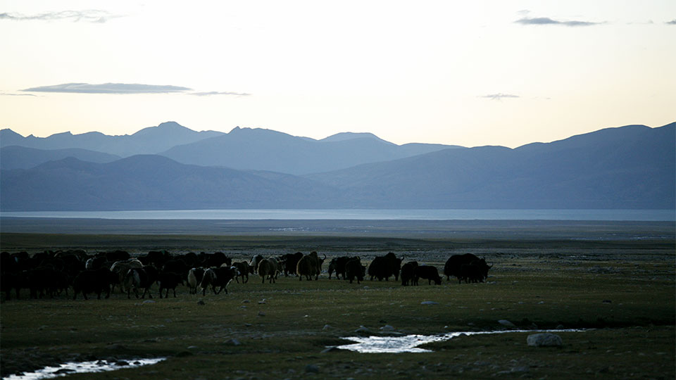 Yaks heading down to Peiko Tso - Jamie