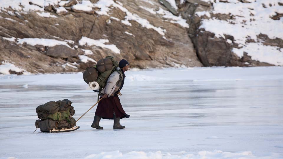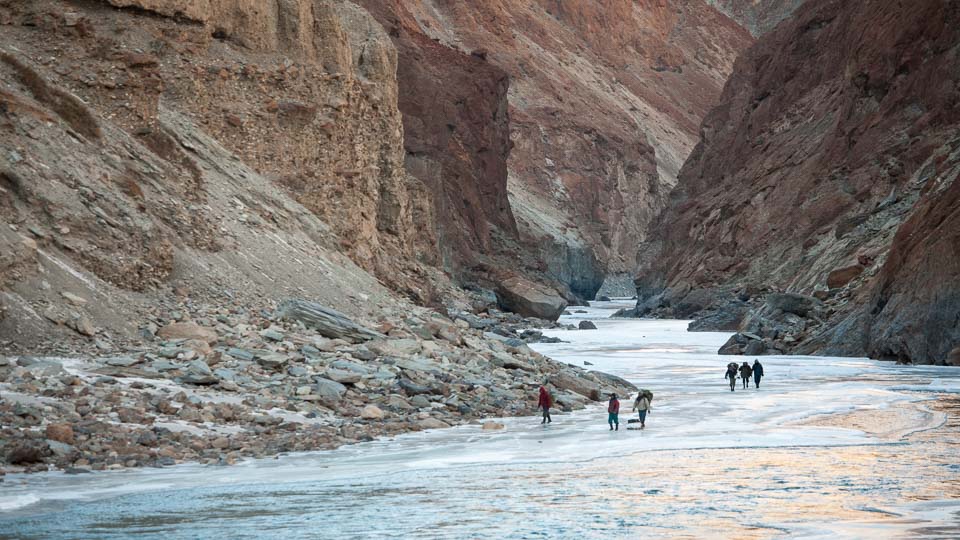 After a quick scout of our side route and if conditions are good, and not overrun by large groups, we will wander along the Chadar, the Zanskar River, and find a cave to sleep in, in the spirit of the real Chadar.
