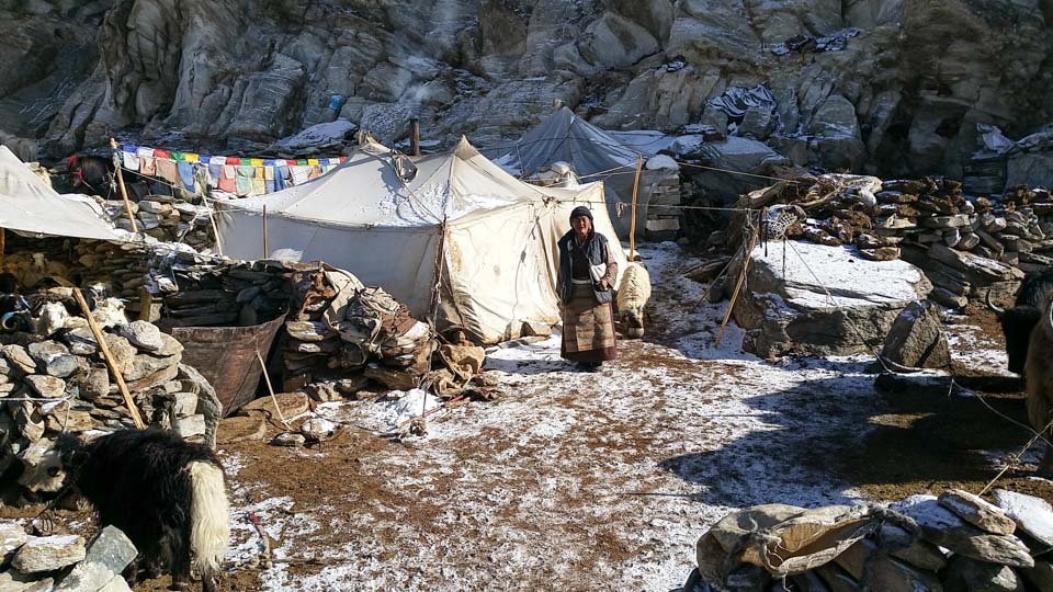 The salt lake of Tso Kar is the real Changtang (also spelt Changthang) and usually gets little snow in winter, hence we come later when there is more likely to be some around. However trekking with horses settlement to settlement is also an option, and indeed there is a skinny road here too, and we can be picked up where ever the reliable and experienced Ang Chuk can reach. If snowy then we may have to trek to Puga via the gentle 4975m Polongka La.