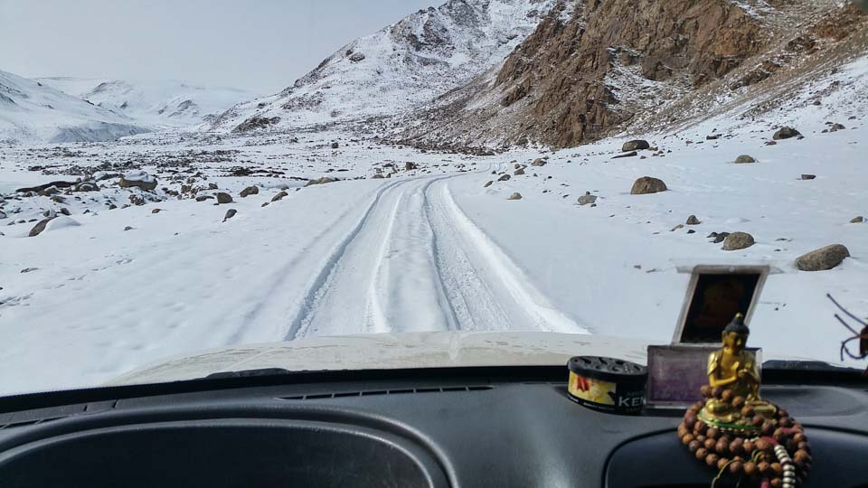 Ang Chuk is a master winter driver - here approaching Puga - Jamie